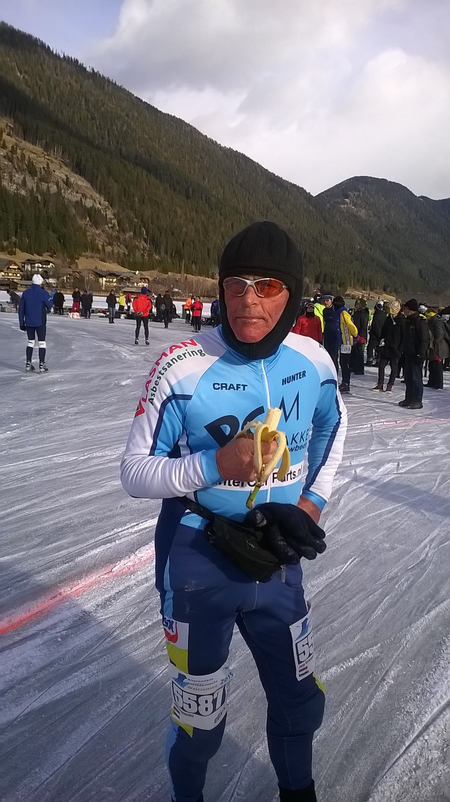 In de week van 25 januari tot 1 februari troffen vele YVG-ers elkaar op de Weissensee om daar te genieten van een prachtige ijsvloer. Hiernaast zie je een van hen: Jaap Groenendal, een YVG-er die als licentiehouder zelden een training op Kardinge mist. We lichten hem er uit omdat hij een echte Weissensee -veteraan is, niet zozeer vanwege zijn leeftijd maar omdat hij al 23 jaar op de Weissensee de 200-km tochten schaatst. Let op: hij heeft daar VIER EN DERTIG keer de 200-km tocht voltooid.