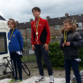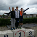 Zaterdag werd ook de Van Lingen wedstrijd voor de jeugd gereden in Wolvega, waarbij 9 YVG-ers aan de start stonden. Op het programma stond een 500 meter serie en een inline-wedstrijd. Bij de pupillen 2 reden Suze Kingma en Jenning de Boo. Suze werd 3e op de 1e afstand, de tweede afstand reed ze niet. Dat vond ze nog iets te eng, omdat haar pols net uit het gips was. Op de ijsbaan is Jenning de Boo al een goede bekenden, maar op de skeelerbaan ontwikkelt hij zich nu ook tot een rijder waar iedereen rekening moet houden: hij ging met het goud naar huis. Bij de pupillen 1 reden Yara Meijers (5e), Nadine Groenewold en Remo Slotegraaf. Nadine viel helaas bij de 1e afstand, maar stond gelukkig snel weer op. Remo is dit jaar nieuw bij de wedstrijdrijders. En we zullen hem nog vaak hoog in alle klasseringen terug zien: vandaag werd hij 1e in zijn categorie. Bij de kadetten werd Niels Kingma 3e en Jorn Holwerda 8e. Jörn Hermse, junior B, is dit jaar ook fanatiek aan het trainen bij de wedstrijdgroep en rijdt meer wedstrijden dan vorig jaar. Dit is ook direct te zien aan zijn uitslagen: in Wolvega goud! Bij de junioren A meisjes stond Amanda Been, een beetje eenzaam, op het podium: ook goud voor Amanda!