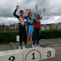In Purmerend, op de baan waar over een paar weken het NK wordt gereden, werd op Hemelvaartdag een landelijke baan wedstrijd gereden voor alle categorieën. Deze wedstrijd was bepalend voor de kwalificatie voor het NK op 29, 30 en 31 mei. Het werd een lange dag, met mooie wedstrijden. De YVG-tent zat propvol deze dag. Fijn dat we weer zoveel actieve rijders (en ouders) hebben dit jaar! Bij de pupillen 1 meisjes reden Evi Gelling (18e), Imke van Melle (19e), Nadine Groenewold (23e) en Eva van Melle (34e). Bij de jongens pupillen 1 debuteerde Remo Slotegraaf op landelijk niveau met een knappe 9e plaats. Amber Bartels (kadet meisjes) voelde zich niet fit vandaag en werd 22e. Bij de kadetten jongens stonden Marnix Joustra, Niels Kingma en Jorn Holwerda aan de start. Marnix rijd een prima seizoen tot nu toe. Vandaag werd hij 7e. Niels werd 14e en Jorn 33e. De 1000 meter van Kirsten Joustra (junB.) werd 14e, mede door een teleurstellende 1000 meter. Jorn Hermse (junB.) werd 28e. Bij de junioren A dames reed Daphne Hendriks een sterke afvalkoers. Ze werd 7e in het dagklassement. Marloes Groeneveld werd 10e. En tot slot Chris Huizinga, onze rijders bij de junioren A heren. Chris is in zijn categorie een klasse apart en reed eenvoudig naar het goud vandaag. Helaas was de organisatie van de wedstrijd niet helemaal wat we gewend zijn, waardoor er jammer genoeg ook nog wat twijfels zijn over een aantal van bovengenoemde uitslagen.