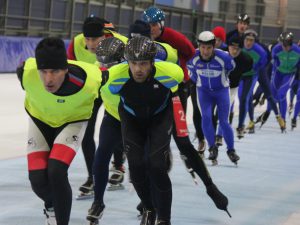 oud voorzitter Frans Sierro zetten na elkaar 4 lange linten van schaatsers zich in beweging. Vanaf de tribune en middenveld altijd een mooi gezicht. Ondertussen draaien een 10-tal schaatsers hun baantjes in eigen tempo buitenom. In de loop van het uur voegen diverse schaatsers uit de toertocht zich bij hen. Het is naast actief sporten, ondanks de haperende rondetijden, ook vooral gezellig op het ijs. Na afloop doen zowel deelnemers als toeschouwers zich tegoed doen aan de chocomelk, kwast en krentenbrood. Het is weer een gezellige boel aan de baan. Met dank aan alle vrijwilligers voor alle hulp. En tot volgend jaar!