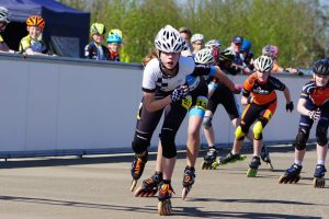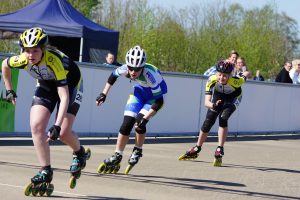 Hannah reed haar eerste skeelerwedstrijd en probeerde zo goed mogelijk de meiden die dit al jaren doen te volgen. Ze mag tevreden zijn met het resultaat.