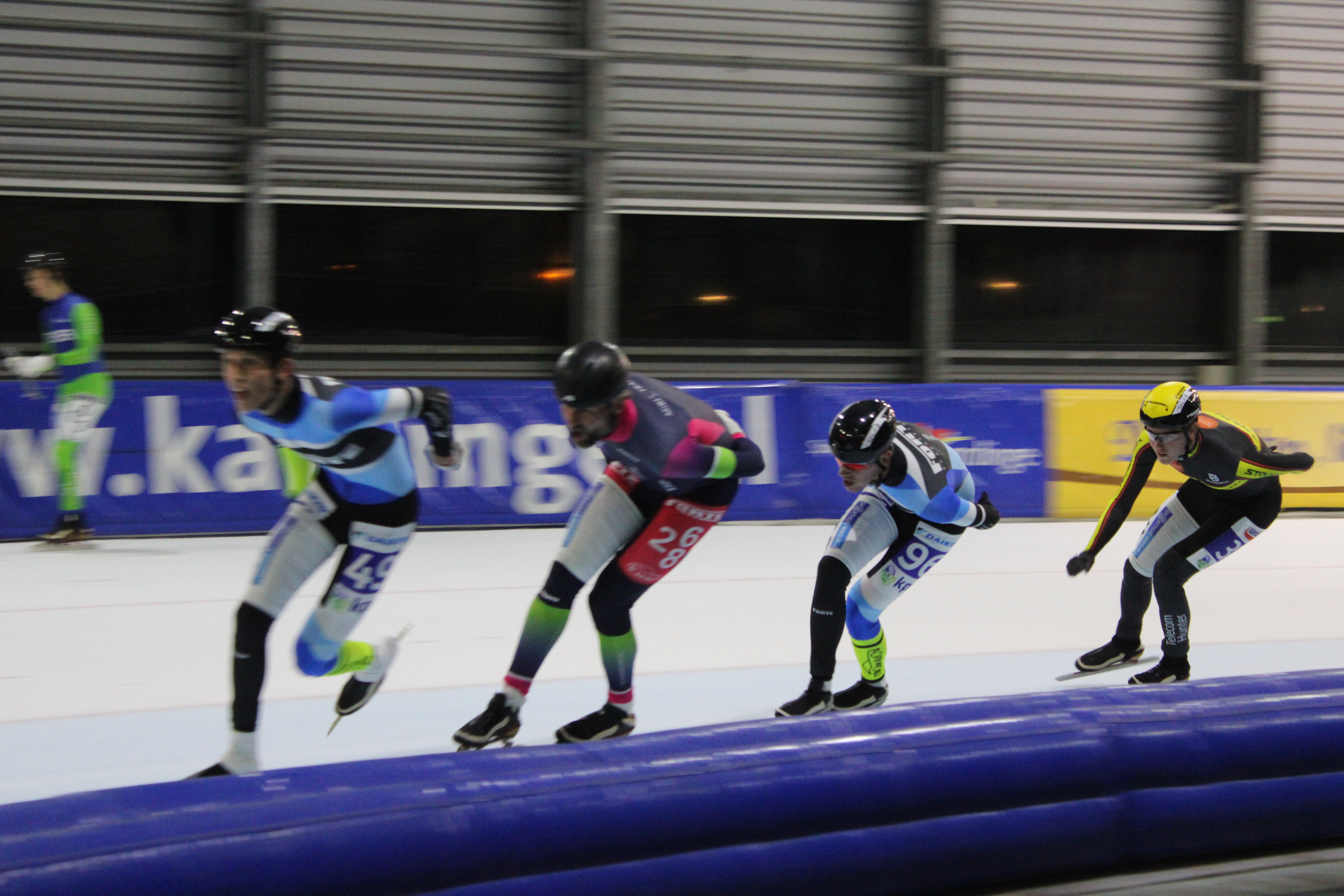 GroepB schaatst 40 ronden met een 45tal snelle rijders. In groepA passeert na 50 ronden de winnaar eenzaam en alleen de finishlijn. De twaalf overige rijders waren reeds binnen. Dit waren wedstrijden waarbij het (te) weinige publiek luid en duidelijk aanmoedigingen over het ijs liet schallen.