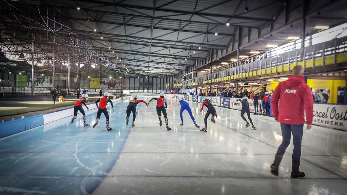 In totaal hadden ook 17 IJVGers de moed verzameld om samen met tal van andere schaatsers tegelijkerdtijd een aantal rondjes zo hard als het maar kan af te leggen. Zo lukte het Evie Lynn Koster en Suus Gudema om in groep 1 na 2 ronden als 2e en 3e de finishen. Hetzelfde lukte in groep 3 na 6 ronden ook voor Diede Oosterveld en Finn Zachrisson.