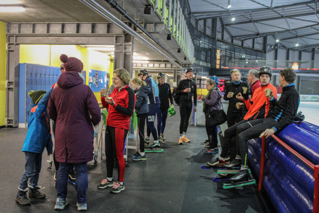 Zondag 8 januari, het 1e YVG uur in het nieuwe jaar. Naast de ijsbaan een kleine koek & zopie met warme chocomelk, 3 soorten Knols koek en Vegters rolletjes. En op het ijs daarvoor een zestigtal YVG’ers, klaar voor de toertocht.